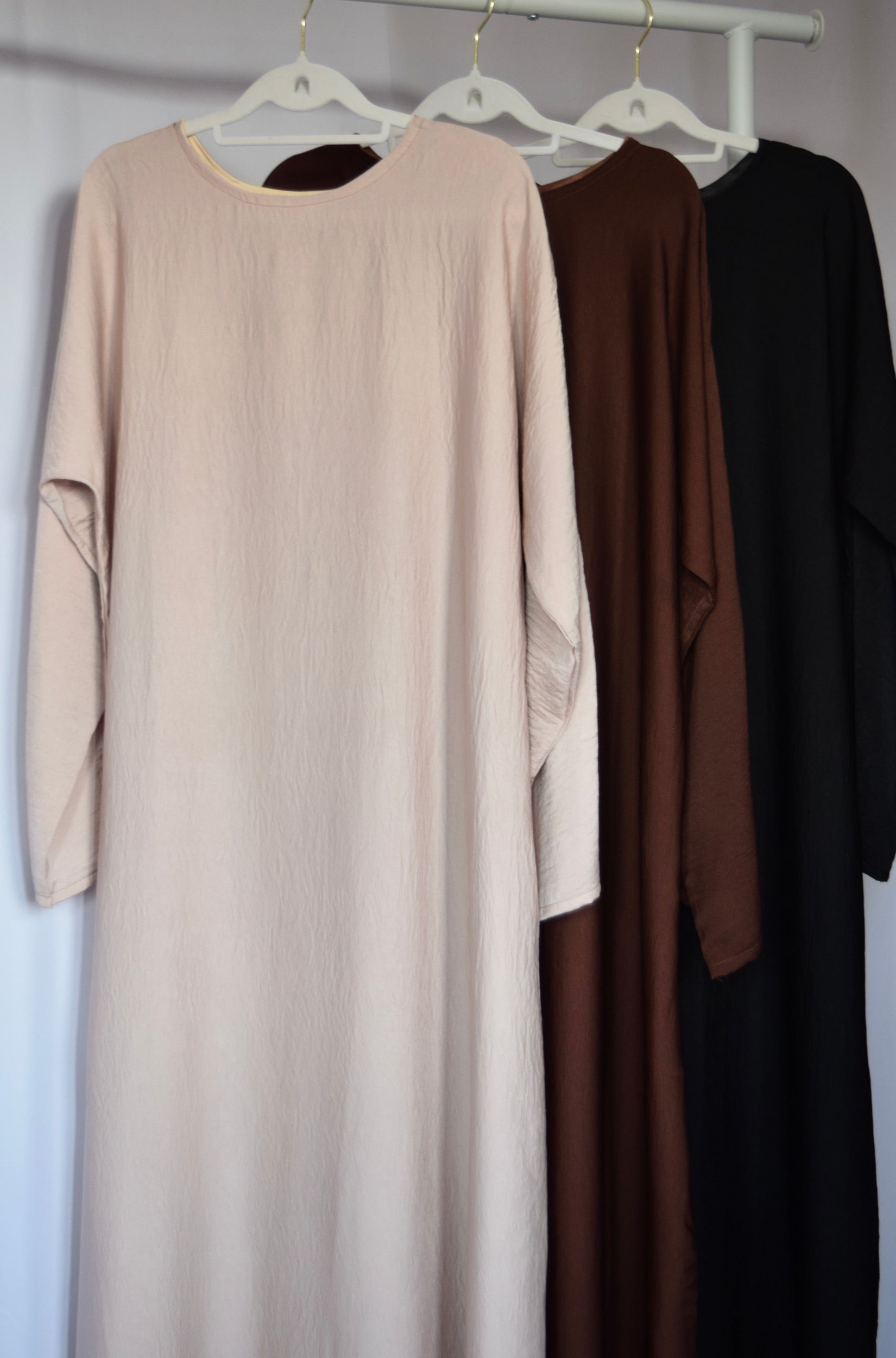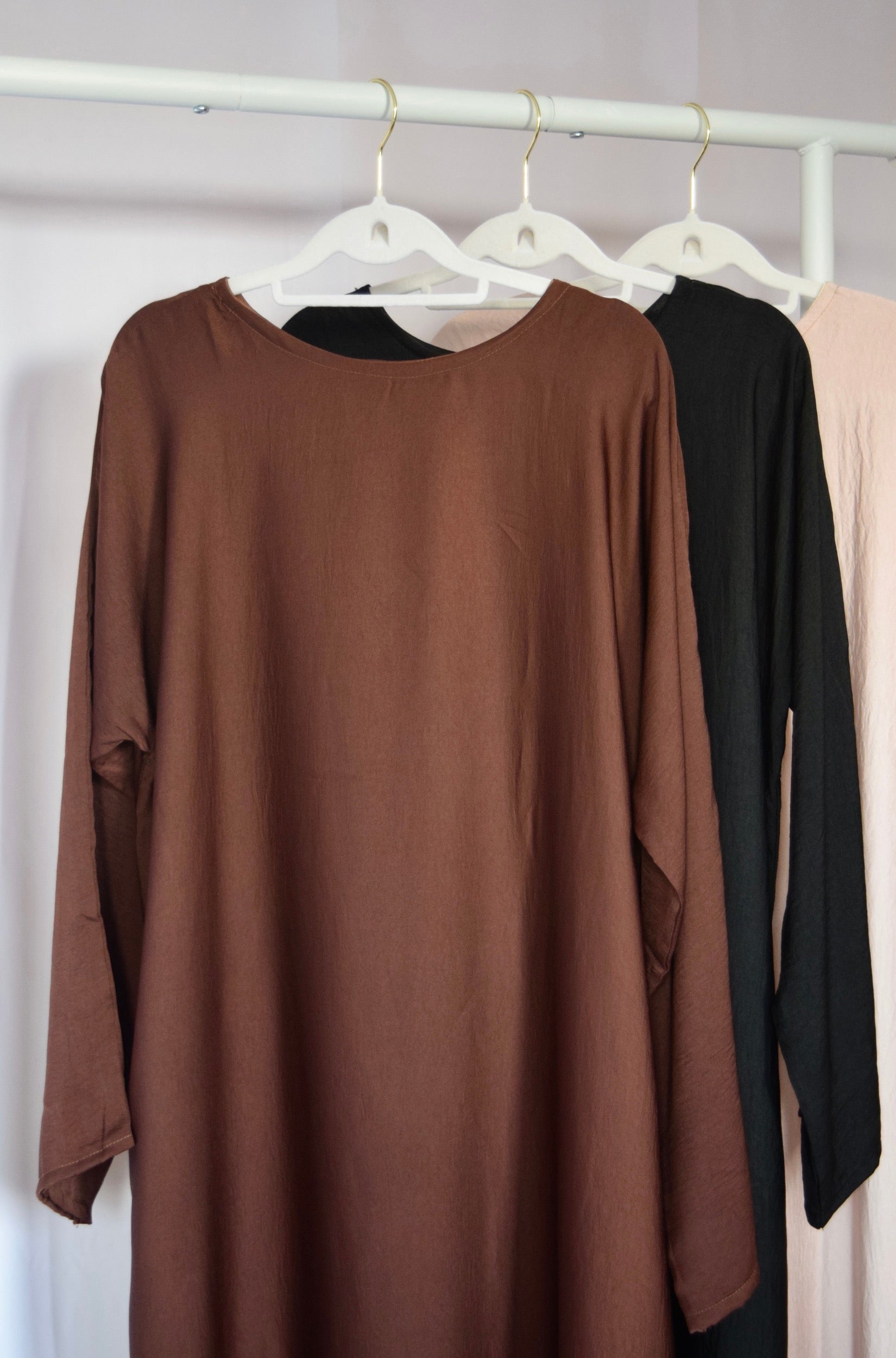Our Soft Crepe Long Sleeve Inner Slip Dress is the essential piece needed in every modest girl’s closet. The buttery soft fabric is perfect as a lightweight layer and provides a more elegant look than the average thick crepe slip dress. The slip dress features long sleeves to ensure full coverage under transparent or wide sleeve abayas.