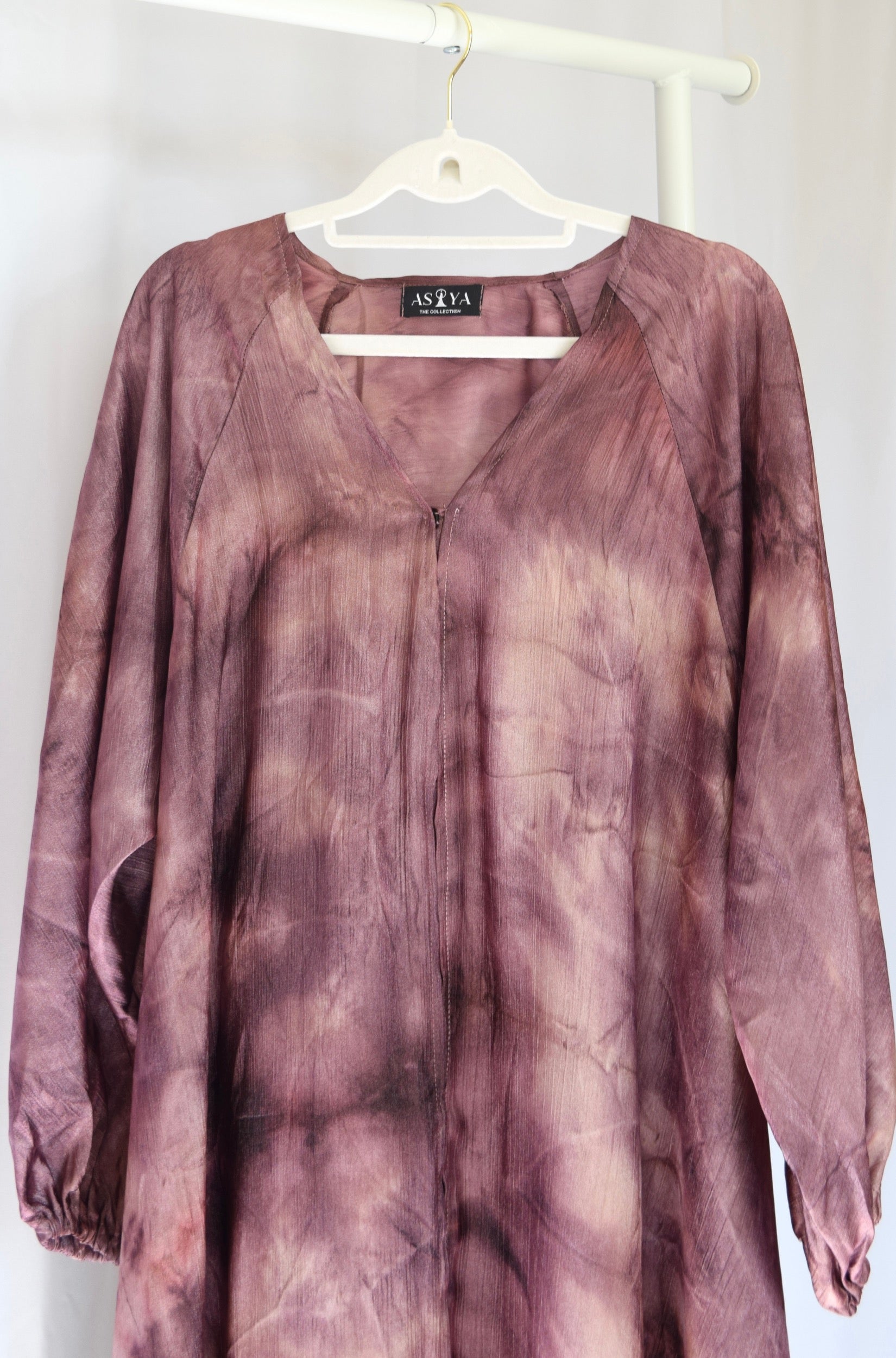 EVENING Flowy Tie Dye Button Down Abaya in Berry Blast