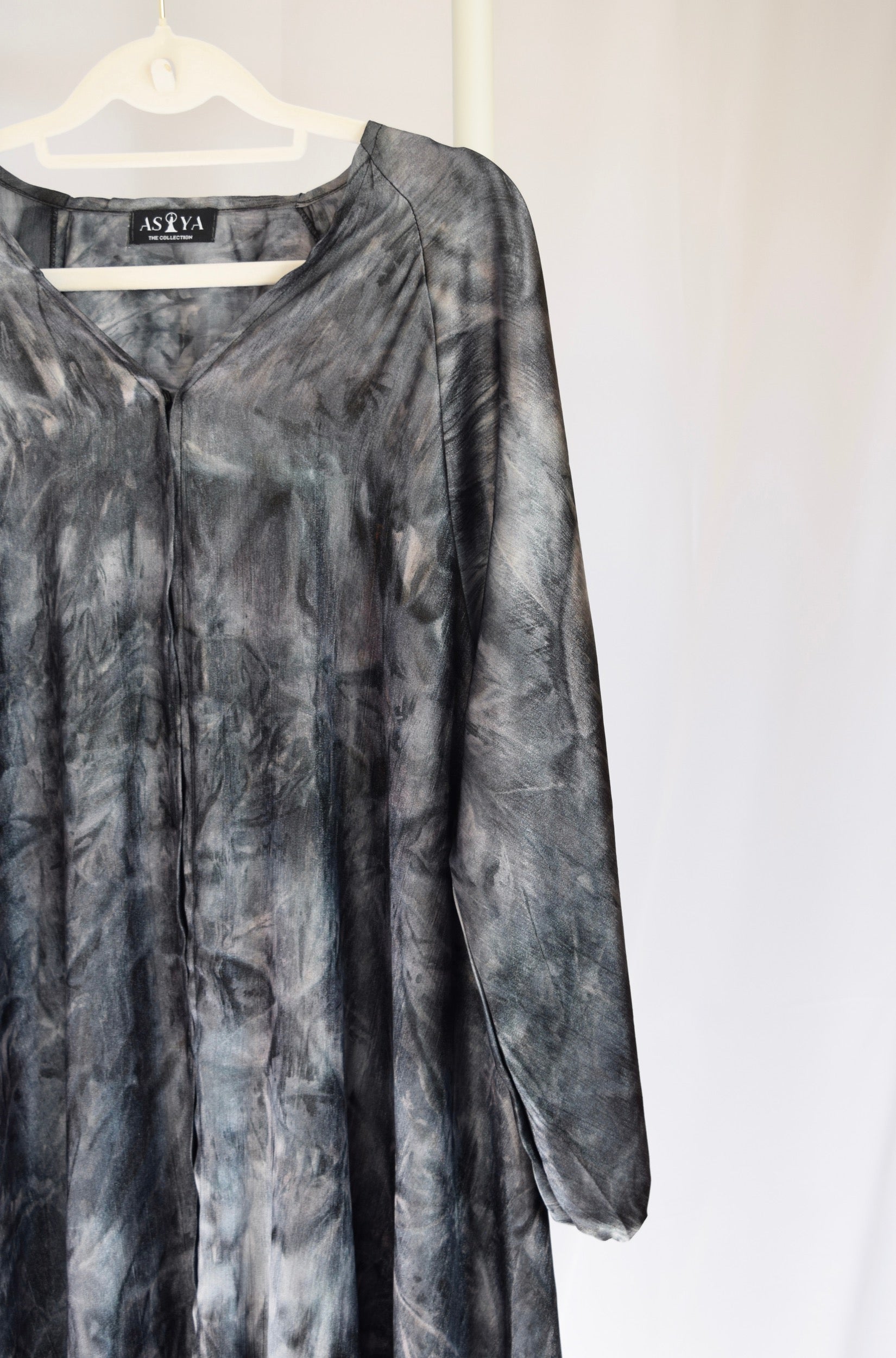 EVENING Flowy Tie Dye Button Down Abaya in Midnight Mocktail